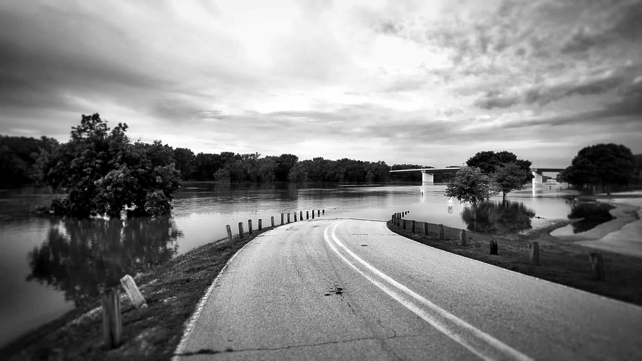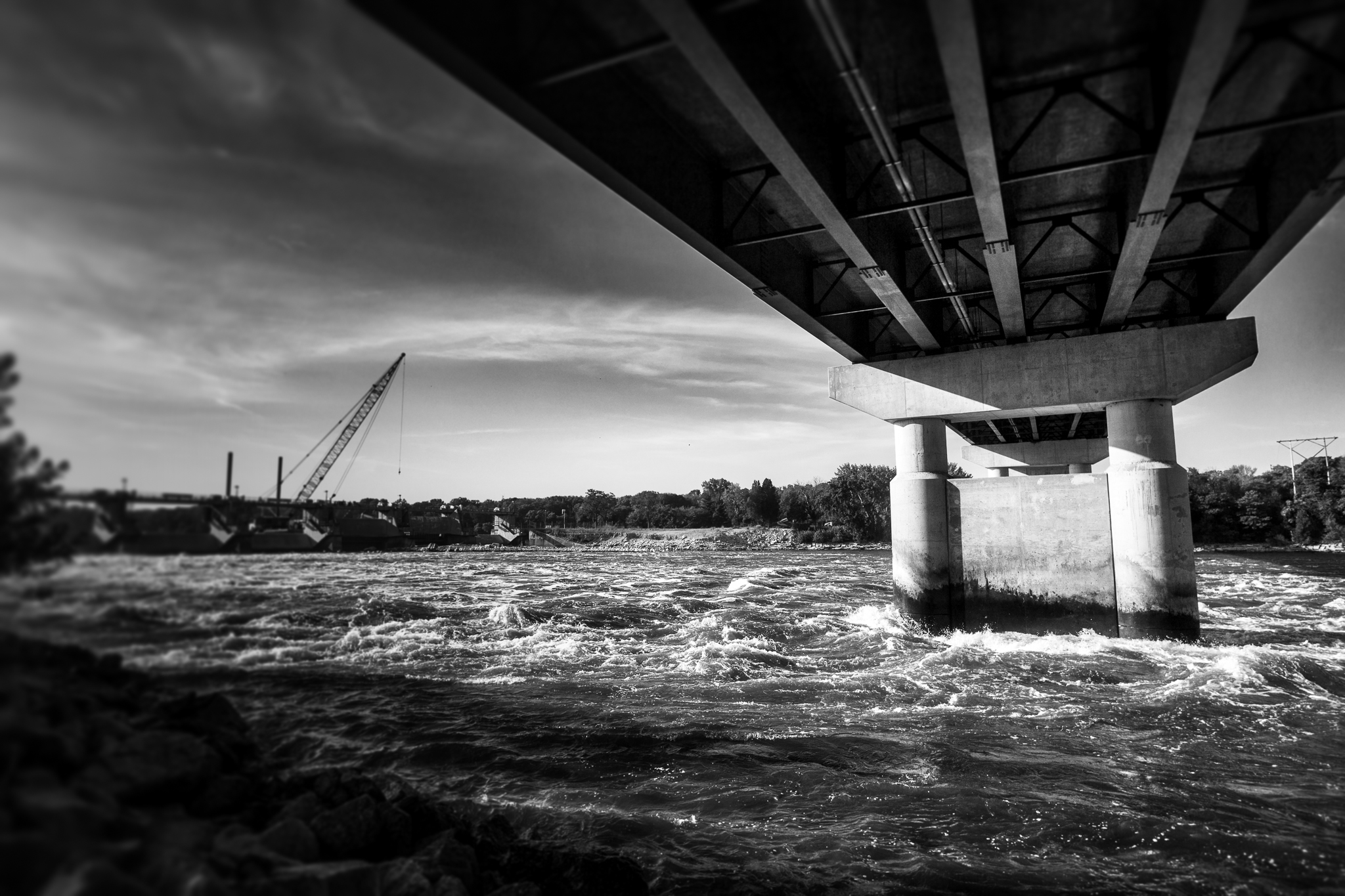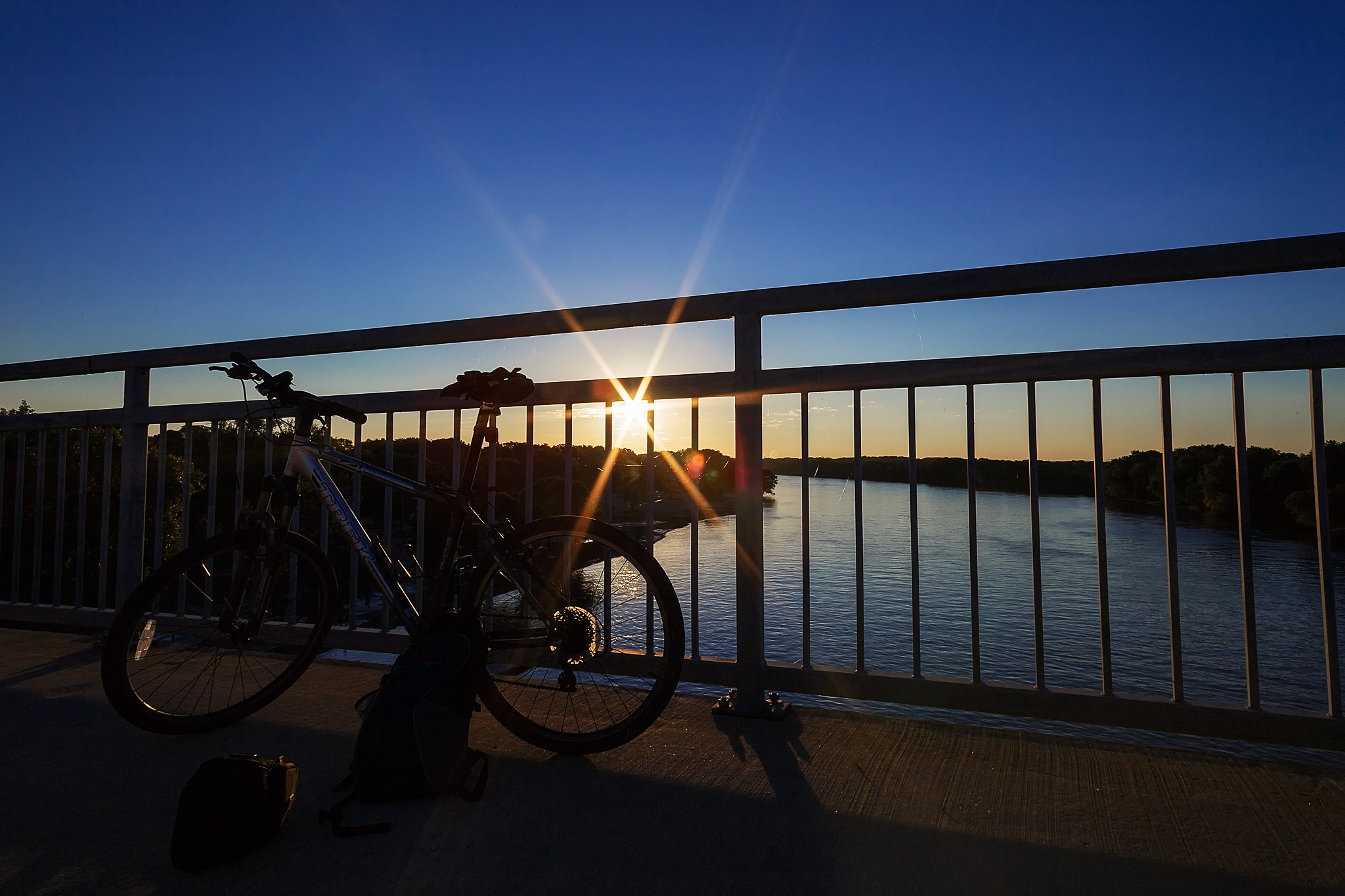 A quiet moment at the start of the day on a bridge high above the Illinois River.