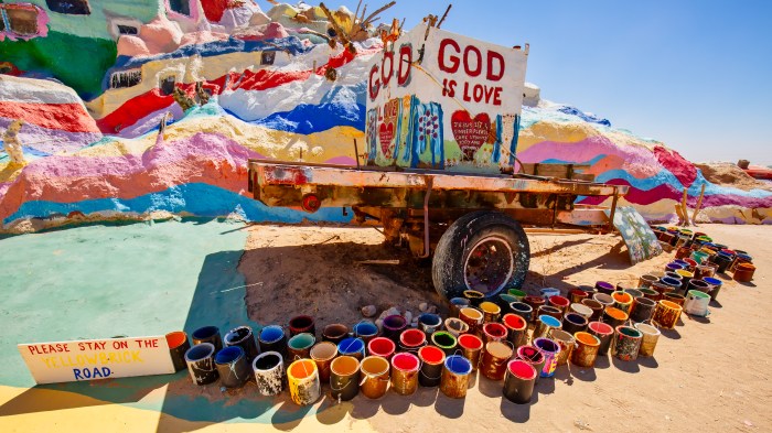 For this post: back to Salvation Mountain, Niland, CA. There are 7 or 8 vehicles at this crazy, wonderfully offbeat artistic ode to God, His love and, the Bible.
